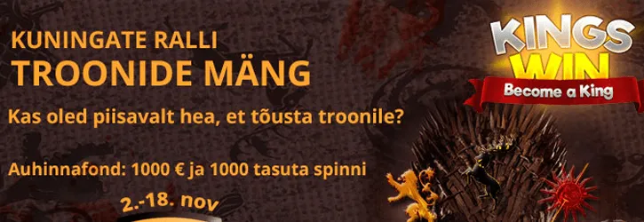 Kingswin kasiinos on käima läinud järjekordne slotipidu ning sellel korral on peoperemeesteks tuttavad tegelased ja tegelannad “Troonide Mängu” menuseriaalist. Kui sulle meeldisid seriaali esimesed seitse hooaega, siis kindlasti meeldivad sulle ka populaarsed samanimelised slotimängud. Ning neid on Kingswinis õige mitu- lisaks 15 liiniga Game of Thrones slotile on ka teine versioon, kus kasutatakse uudset 243-võiduvõimalust tehnoloogiat. Seega proovi neid mõlemaid ja otsusa ise, kumb sulle paremini sobib.
