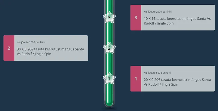 Asja põhimõte on teha võimalikult palju panuseid, et koguda punkte. Iga mängu pandud euro eest saad punkti. Vastavalt kampaania perioodil 1.- 31. detsembrini kogutud punktidele saavutad uusi tasemeid ning iga taseme eest auhinna.