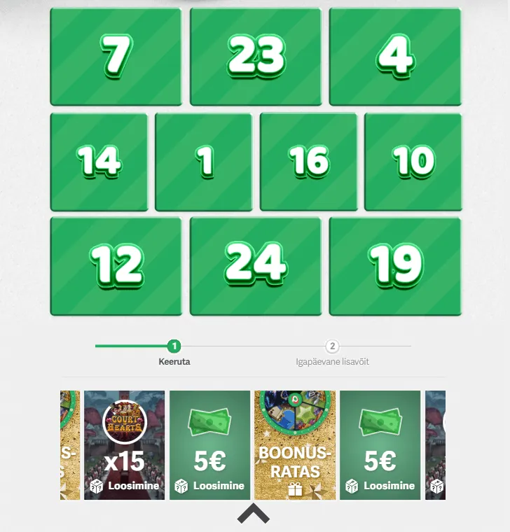 Kliki käesoleva detsembri kuupäeva peale ning saad kohe teada, mille peale mäng käima hakkab. Valikus on tasuta spinnid, auhind spordiennustuses või hoopis bingopilet.