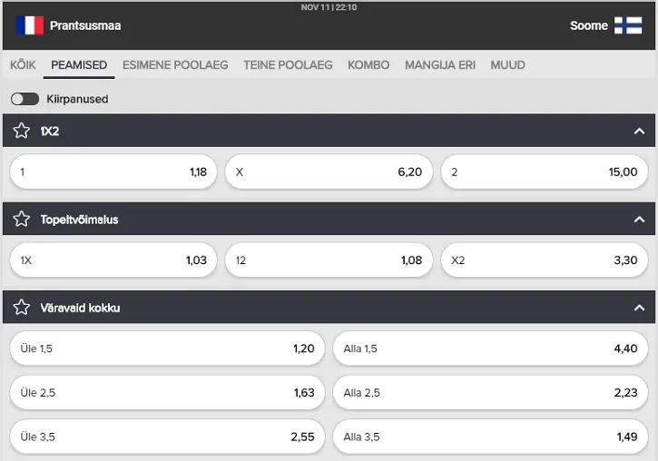 11 novembril toimuva Soome- Prantsusmaa vutilahingu peale saavad kõik uued ja vanad mängijad panuse teha 100% cashback preemiaga. Osalemiseks ava Ninja Sports lehel “Minu panused” sektsioon ja sisesta “Boonus” aknas boonuskood FVS100 Kopeeritud . Seejärel saad Soome vs Prantsusmaa matši peale oma ennustuse kirja panna ning kui peaksid kaotama, saad raha tagasi täies ulatuses.