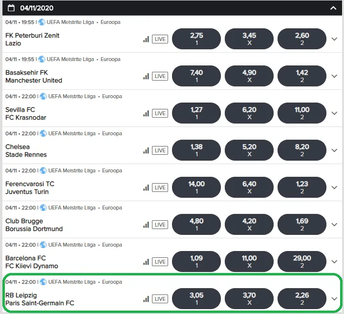 Juba 4. novembril toimub oluline matš sakslaste ühe parema klubi RB Leipzig ja Prantsusmaa au ja uhkuse PSG vahel. Kõik Ninja Sports ennustajad saavad selle kohtumise peale teha ennustuse riskivabalt. Kui kaotad, saad raha lihtsalt tagasi kuni 15€.