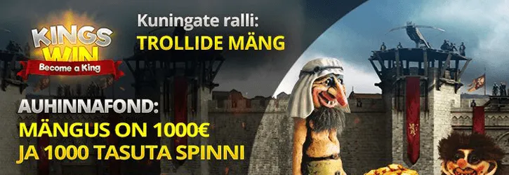 Troonide Mängu seriaal on selleks korraks läbi, kuid Kingswinis jätkub draama ja rahajaht “Trollide Mänguga”. Panusta “TROLLS” kategooria mängudel vahemikus 24. maist 9. juunini ja teeni välja oma osa 1,000€ väärtuses boonustest. Raha saavad edetabeli neli paremat ja tasuta spinne mängijad, kes saavutasid kohad 5.-20. Mida rohkem mängid, seda rohkem punkte kogud edetabeli arvestuses ja kõrgema koha saad.
