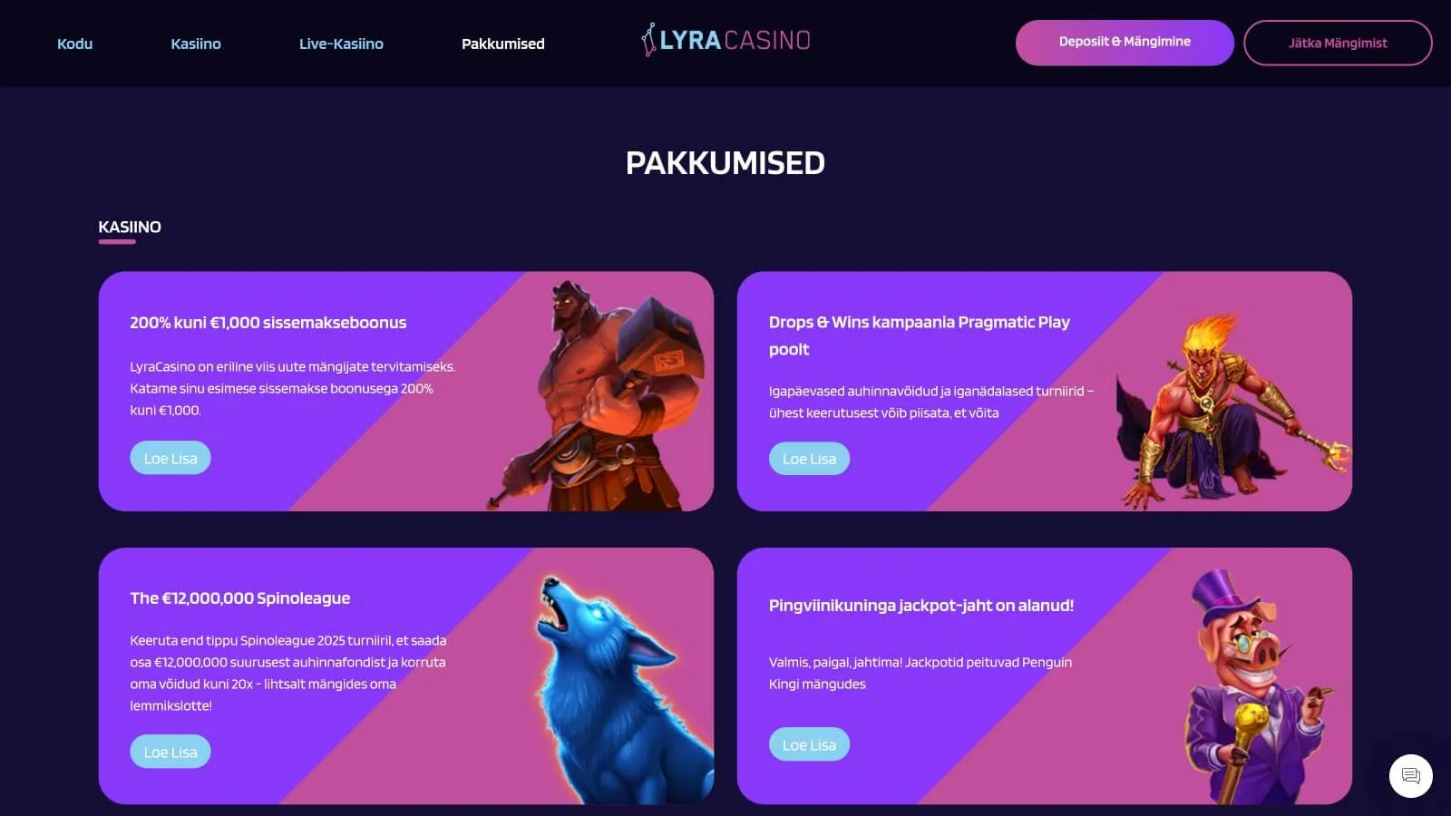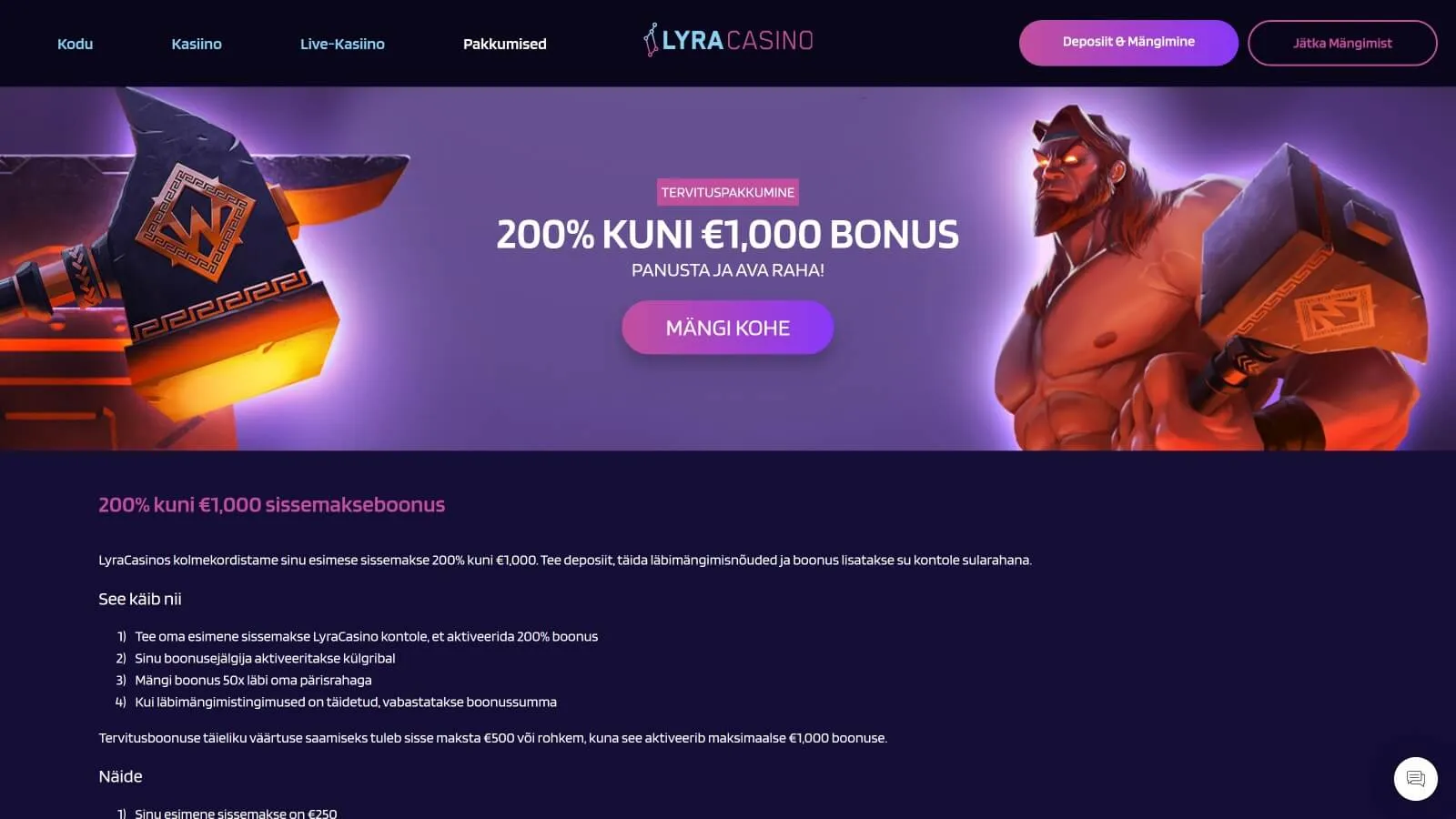 Почти все онлайн-казино в Эстонии, несомненно, предлагают бонусы для новичков, но Lyra Casino отличается особенно щедрым приветственным бонусом: 200% до 1,000 евро.