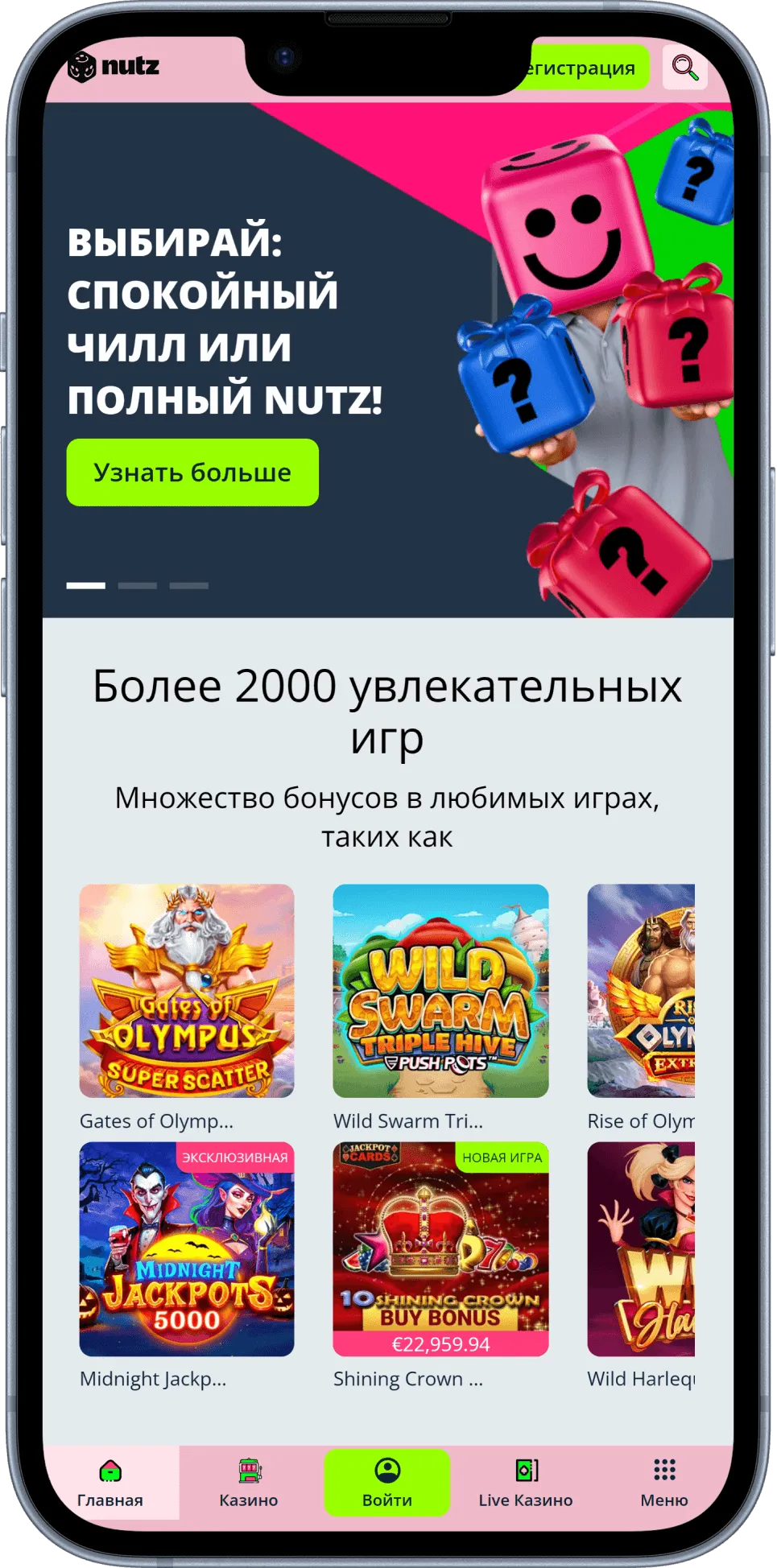 На наш взгляд, казино Nutz даже лучше и удобнее для игры на мобильном телефоне, чем на компьютере.