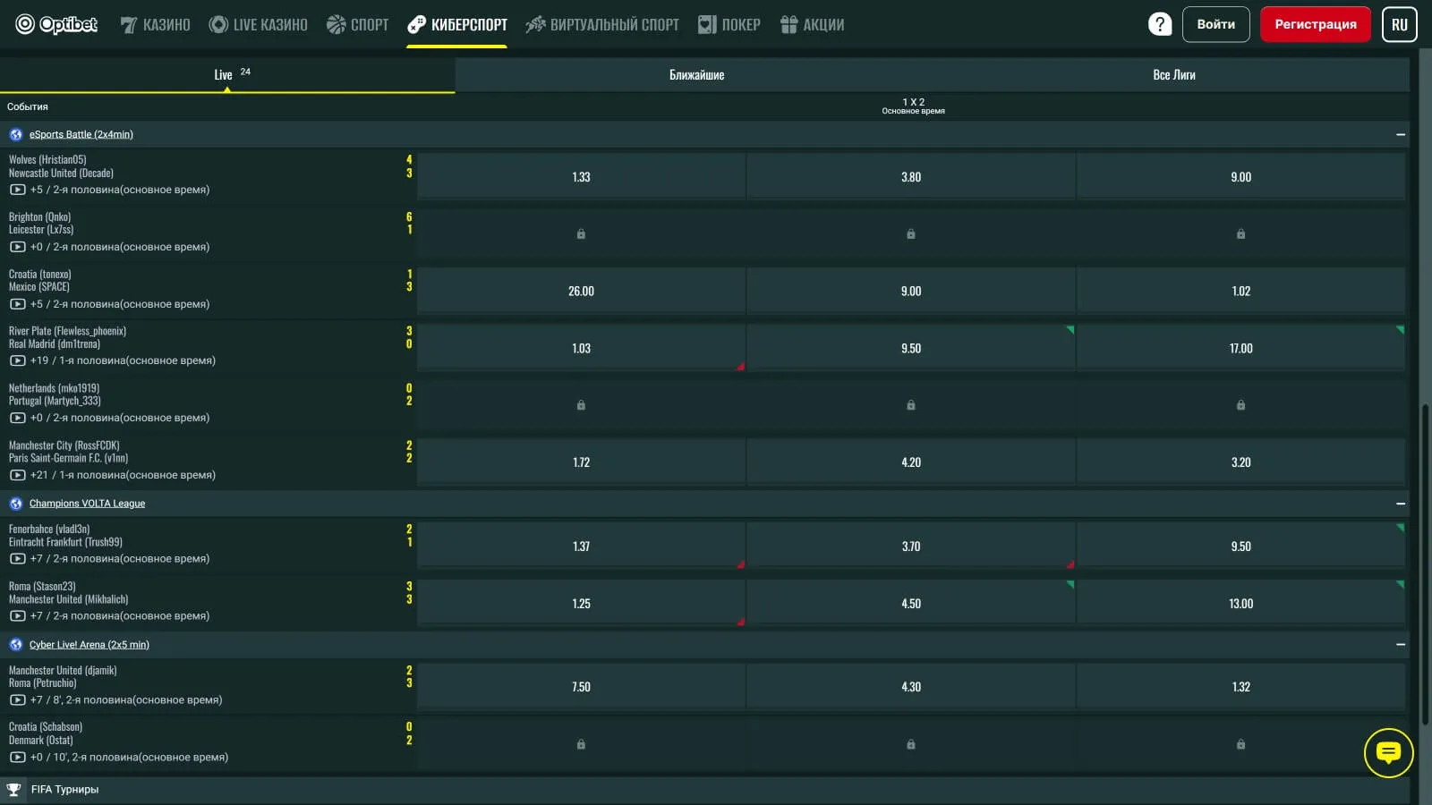 Страница предматчевых ставок хорошо структурирована, и вы можете легко найти все интересующие матчи. С правой стороны красиво отображаются все предстоящие события, с левой, помимо списка видов спорта, есть еще и функция поиска, статистики, результатов и лайв-результатов.