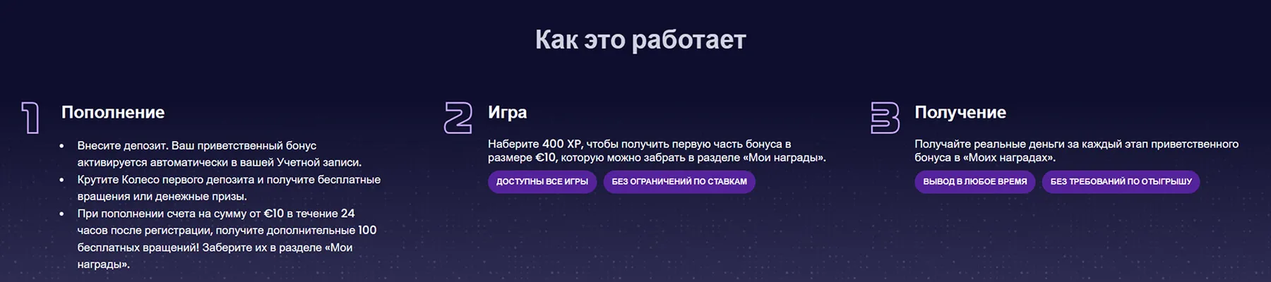 ReSpin приглашает всех новых игроков из Эстонии, независимо от их предпочтений. У вас есть возможность открыть для себя все возможности казино вместе с впечатляющим стартовым пакетом ReSpin, который включает 100 фриспинов на популярном слоте, бонус до €300 и одно вращение Колеса Удачи. При этом все призы полностью свободны от требований по отыгрышу – вы распоряжаетесь своими деньгами по своему усмотрению!