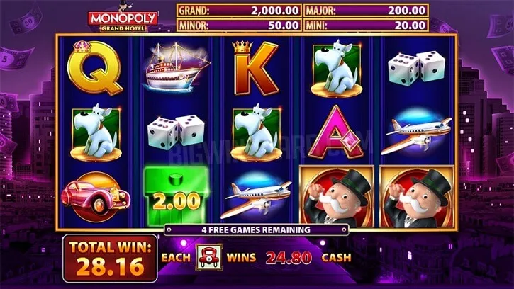 Monopoly Grand Hotel on Shuffle Master ja WMS mänguloojate koostöös valminud slott, mis pakub mängurõõmu 5 rullikul 50 võiduliiniga. Panuseid saad teha alates 25 sendist 200€ni spinni kohta ning ikoonilisele lauamängule antakse siin hoopis uus elu. Boonustest tõuseb tulu “Go” funktsiooni, tasuta spinnide ja Tasuta Parkimise boonustest.