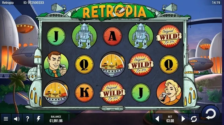 Retropia taustale on sätitud munakujulised ehitised, palmipuud ja troopilised taimed, mis tuttavad vanadest telesarjadest. Väärtuslikemate sümbolite hulka kuuluvad mees- naistegelane, nende abivalmis robot ja veel mõned temaatilised sümbolid.