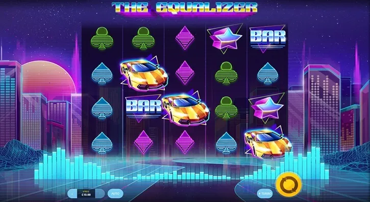 The Equalizer slotil on neoonvärvides kujundus, mis tekitab tunde nagu oleksid sattunud üheksakümnendate diskosaali. Rullikute taga laiub aga hoopis moderne tulevikulinn. Mänguväli on viie rulliku ja nelja reaga ning pakub ka viitteist võiduliini.