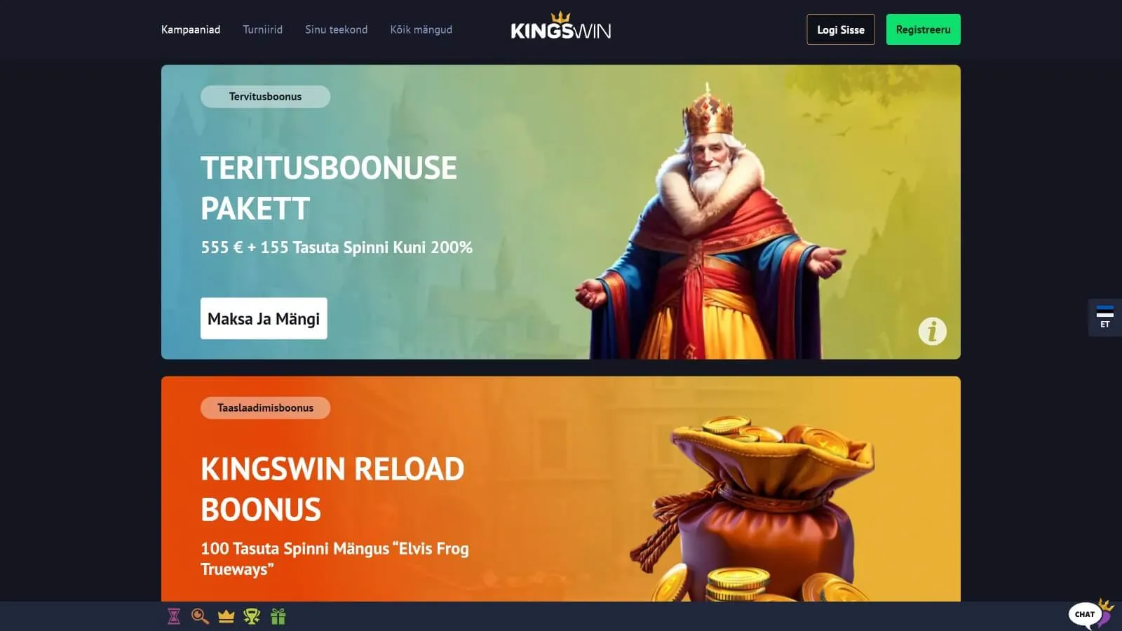 - Jooksvad kampaaniad. Arusaadavalt ei ole jooksvad kampaaniad nii helded kui seda on tervituspakkumine, kuid siiski peaksid olema võrdlemisi ahvatlevad. Samuti ootame me üldist pakkumiste arvukust, mille hulka võiksid kuuluda cashback, reload-boonused, ning ega tasuta keerutustest ka just ära ütleks.