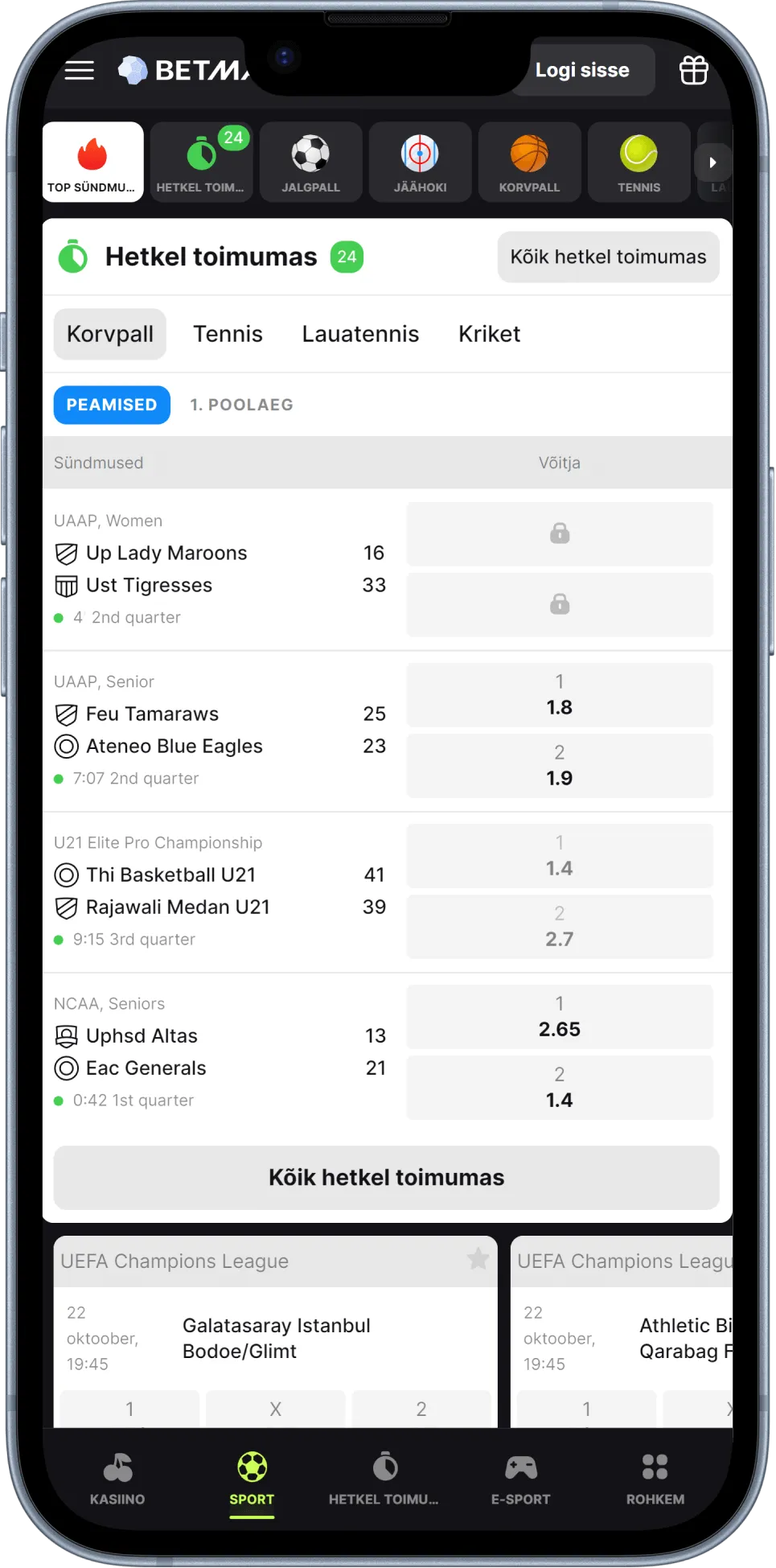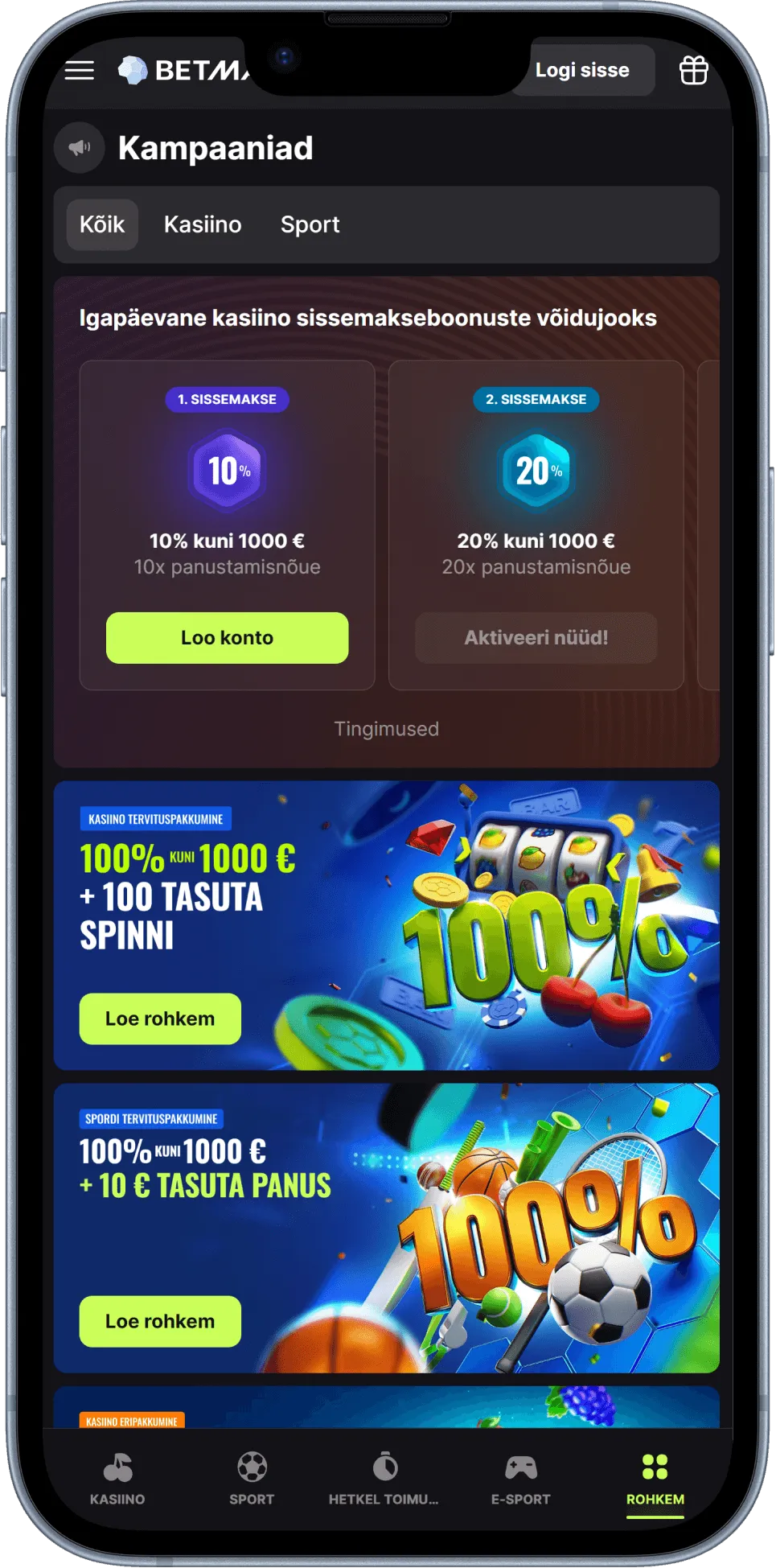 💰Sissemakseboonus Spordile - 50% kuni €200 + €5 tasuta panus igal nädalal!