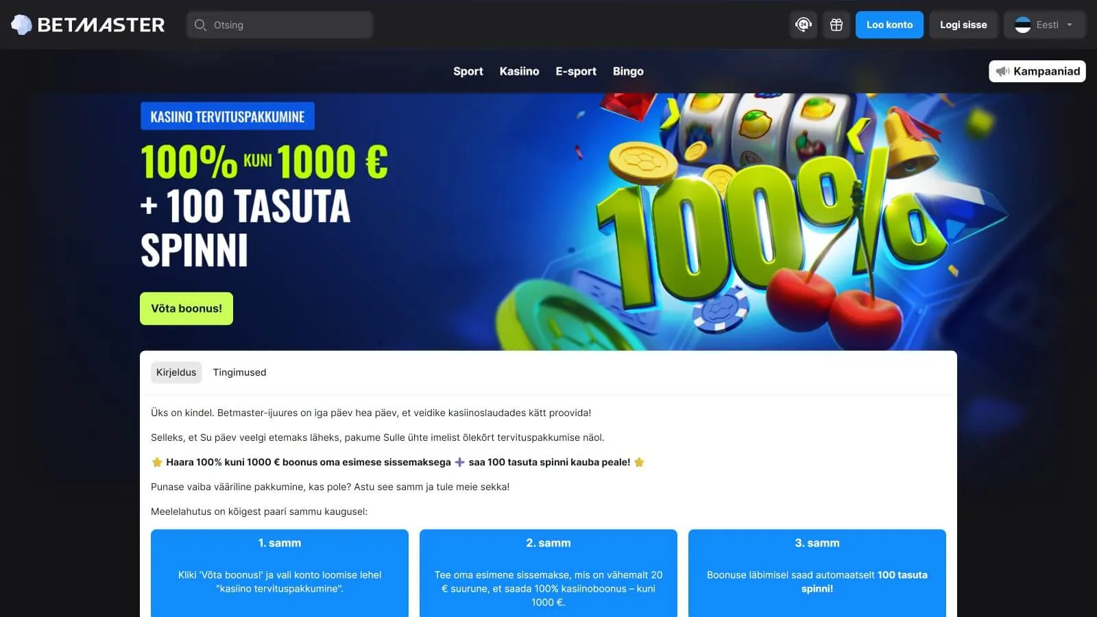 Betmaster kasiino Eesti veebileht – www.betmaster.ee