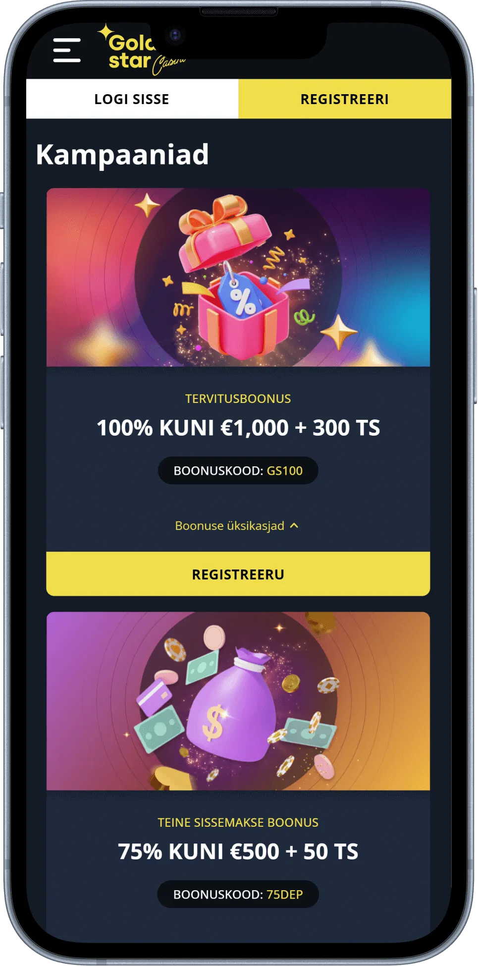 ⚠️Mõlemal juhul peate nüüd kasutama ka Golde Star kasiino boonuskoodi: