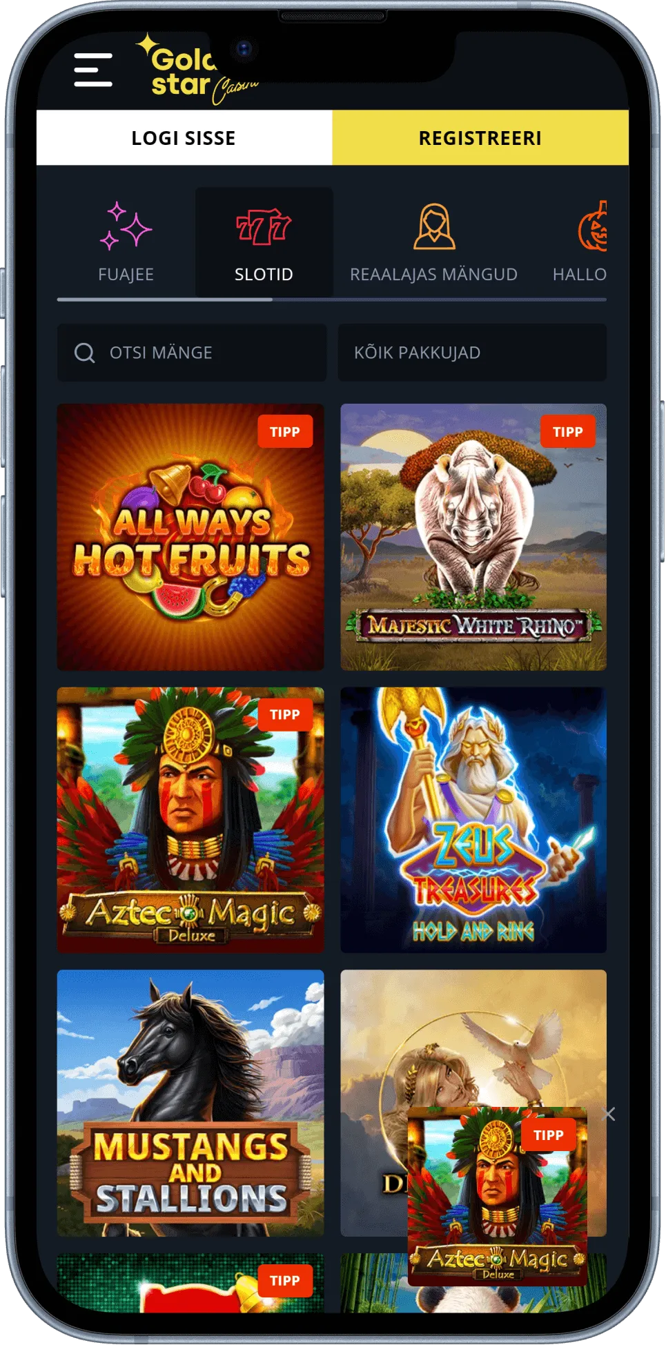 Golden Star kasiino pakub oma mängijatele siidjalt siledat kasutajakogemust, kus võib sirvida tuhandeid slotikaid ja lisaks ka live-diileriga laudu. Jackpot mängude žanri harrastajad tunnevad rõõmu suurest valikust koos eksklusiivsete auhindadega.