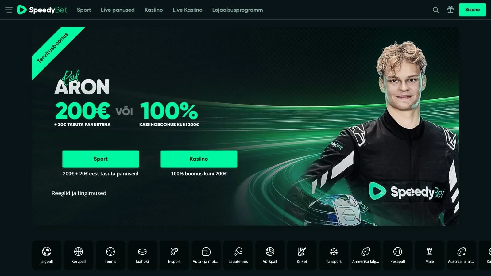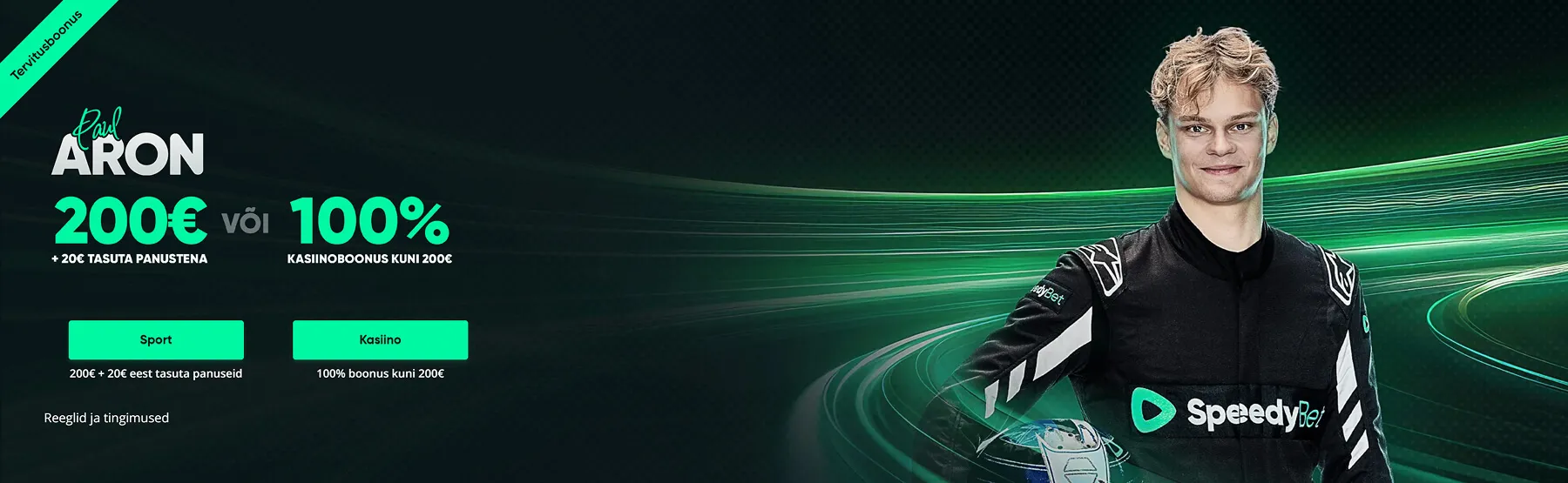 Seega võite rahumeeli kindel olla, et Speedybet puhul on tegemist viimseni viimistletud spordiennustuse ja kasiinoga, kus teid on ootamas rikkalik mänguvalik, mida saate nautida kõikvõimalike boonuste ja pakkumiste ampsudega. Roheka tooniga Speedybet jääb koheselt silma ka sellega, et stardipauguks on sõlmitud koostöökokkulepe Eesti noore ja talendika võidusõitjaga Paul Aron, kes on rühkimas mootorispordi kuninglikku Vormel 1 sarja.