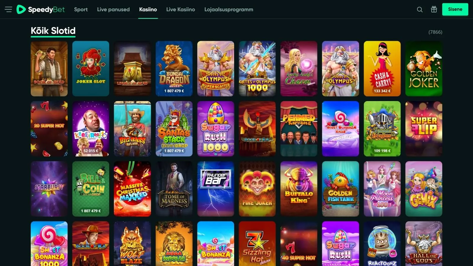 Avades läbi põhinavigatsioonis asuva viite Kasiino slotikate vahelehe, kuvatakse teile võrdlemisi lihtne alajaotus, kus leiate vaid Boonuse ost, Jackpotid ning Populaarsed.
