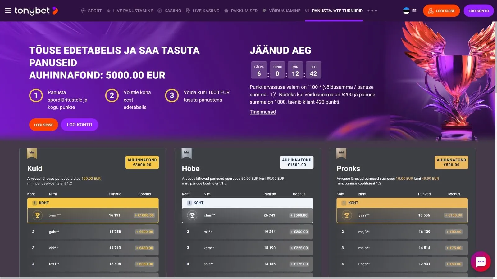 Tonybeti uus veebleht, millel panustamine on veelgi ägedam!